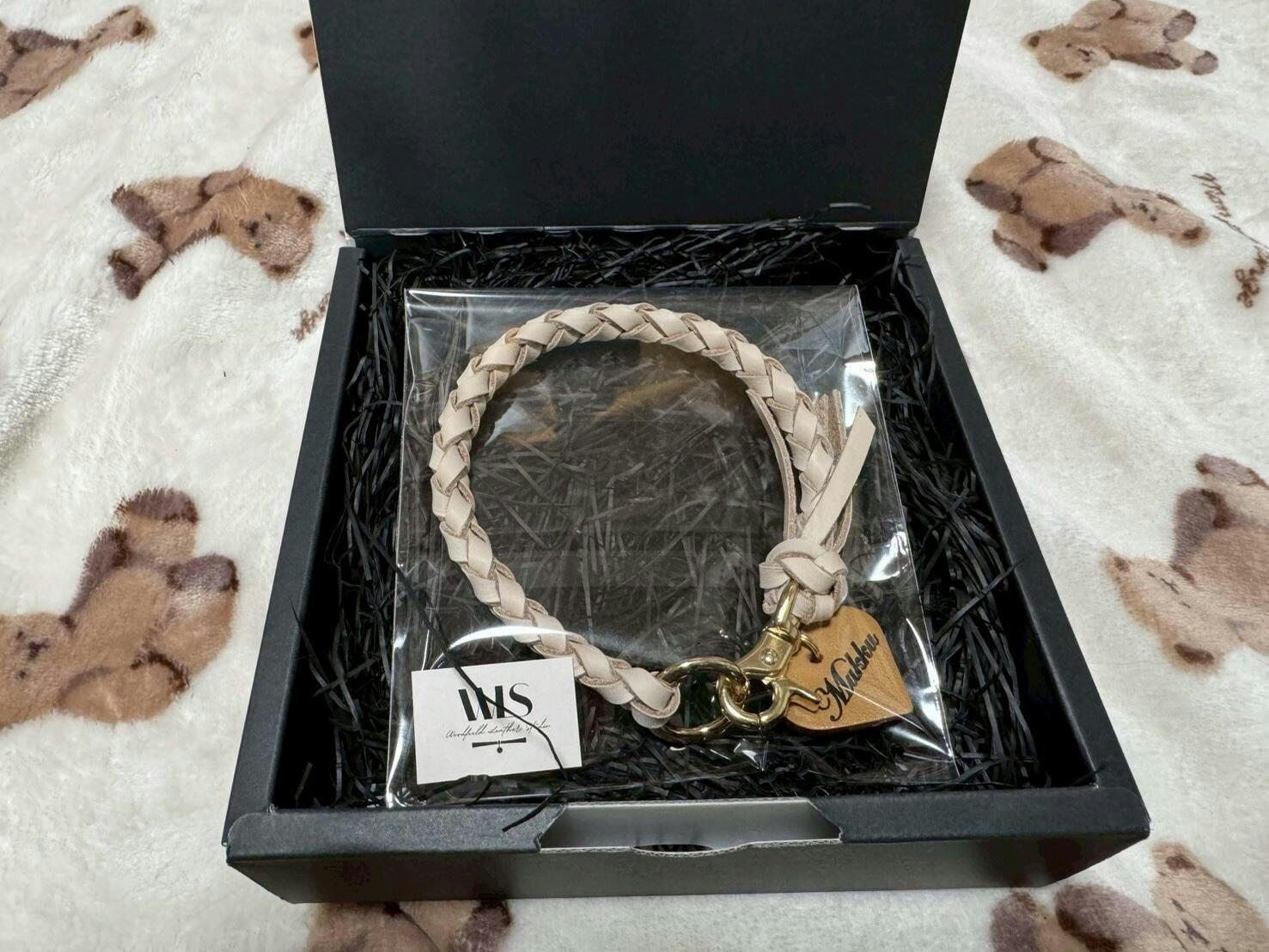 この首輪は、日本国内のアトリエにて、職人が一点ずつ手作業で製作しています。